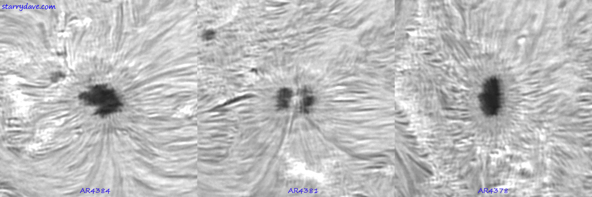 These 3 sunspots were captured on 6th March 2026. Their inner cores are all pulsating with ripples spreading out from the centres. This phenomenon is called umbral flashes.